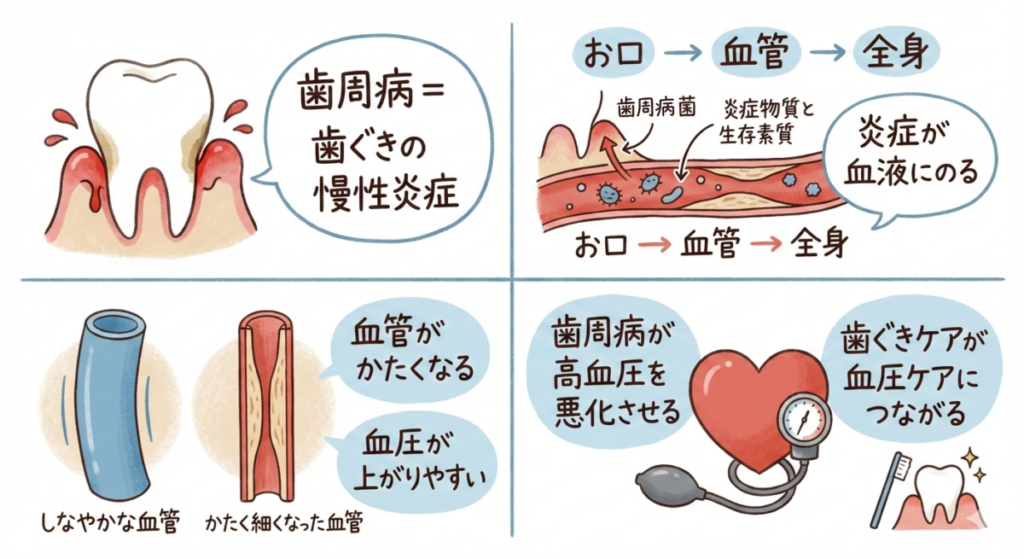 なぜ歯周病が高血圧に影響するのかを分かりやすく解説します。
