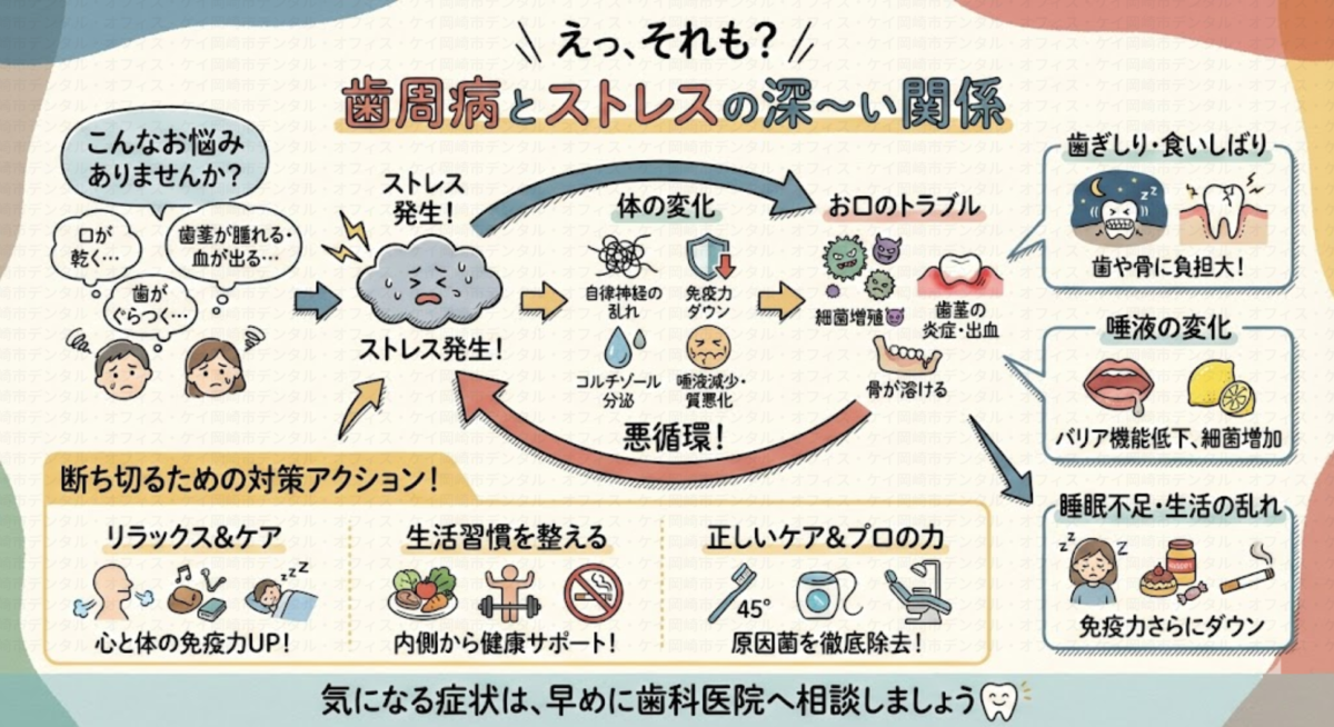 今回は、ストレスが歯周病に与える影響と、その対策についてわかりやすくご紹介します。